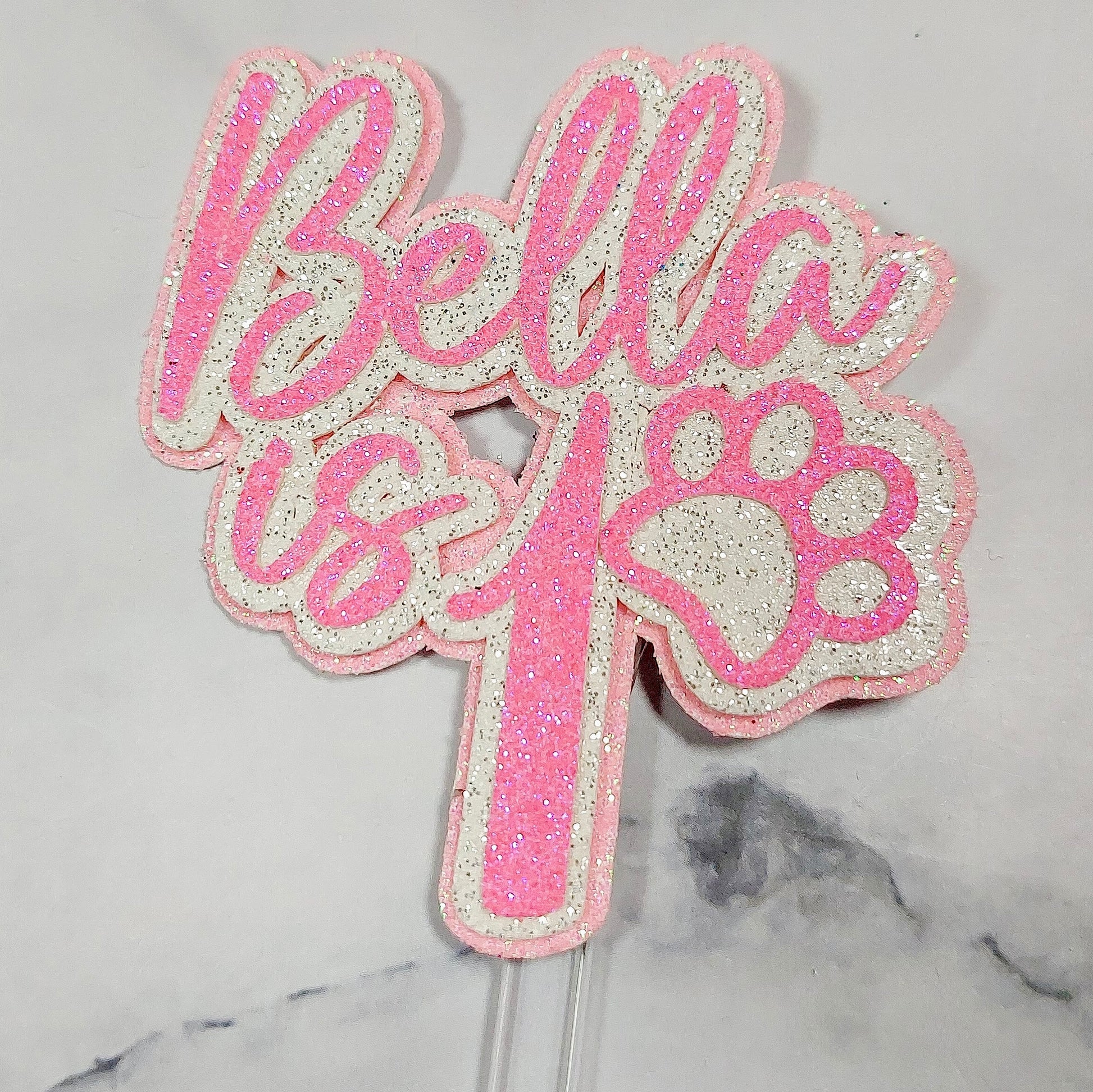 Made from glitter card and attached to a mini acrylic stick. Not edible. 3D layered design and available in different colours.