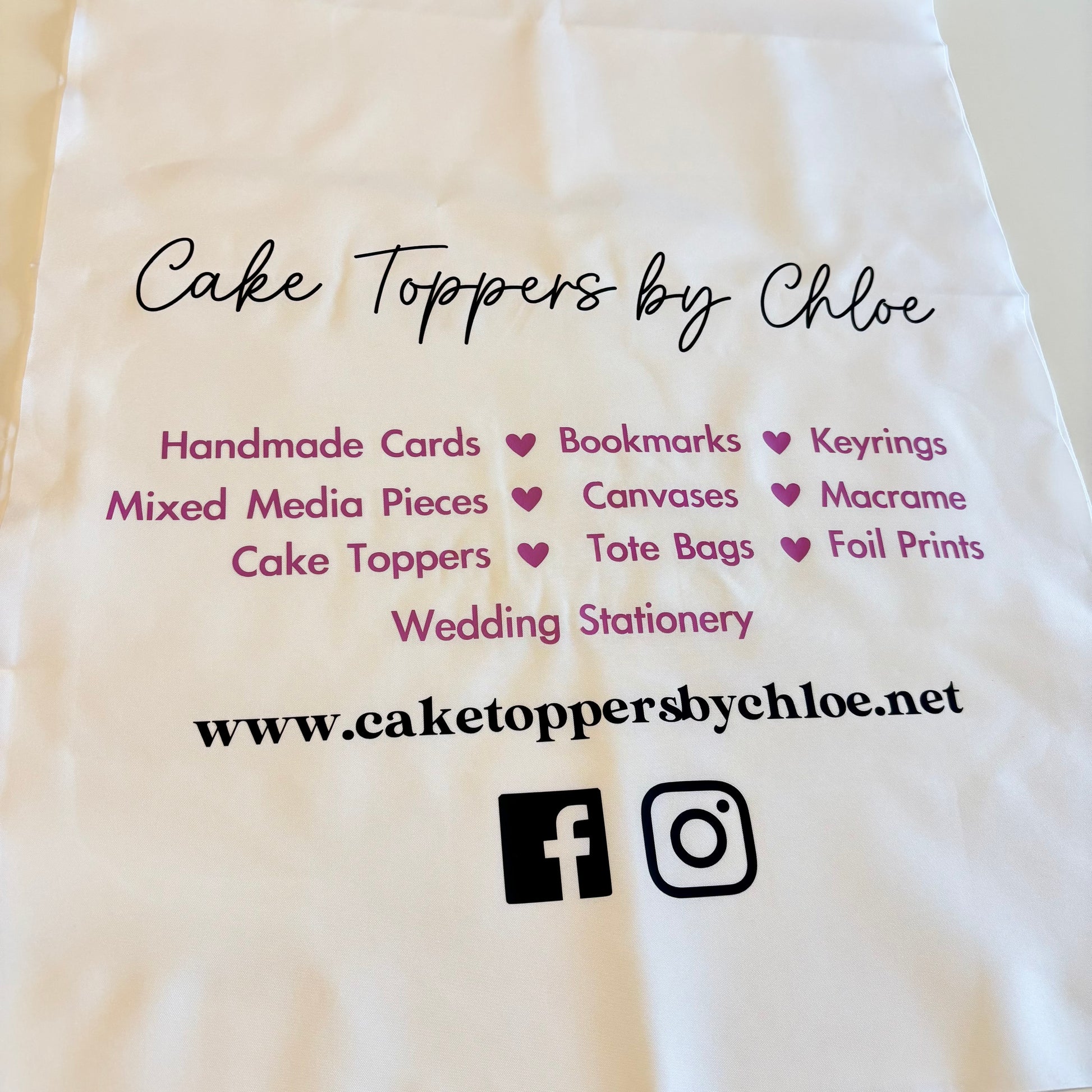 caketoppersbychloe@yahoo.comPersonalised table banner - perfect for market stall events or parties! After placing your order I will contact you to request the text you’d like on your banner and the vinyl colour(s). If I don’t have the colours you’d like in stock, delivery time is 3-5 days for them to arrive to me.
